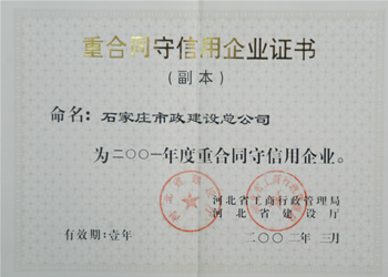 2001年重合同守信譽單位2