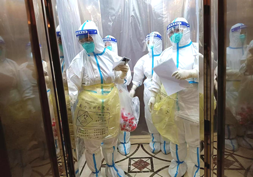 面對始料未及的新冠疫情再次來襲,職工醫(yī)院全體女醫(yī)護人員不再慌張,而是緊張有序的進行著每一項工作。她們細(xì)心的為承接的LV隔離酒店隔離區(qū)進行嚴(yán)密消殺,每日從專用步行梯人工運送垃圾,為隔離人員按時進行核酸檢測、送水送飯。進入隔離區(qū)最快也要持續(xù)4、5個小時,一套流程下來整個防護服都濕透了,這些可愛的天使們還打趣道“又洗了個天然沐浴”!